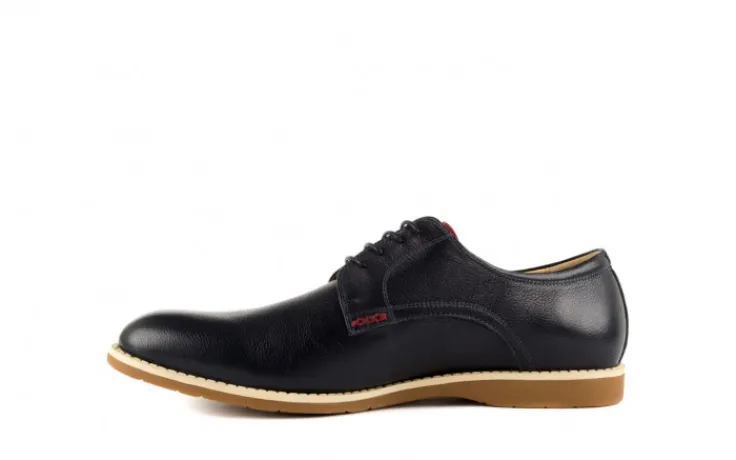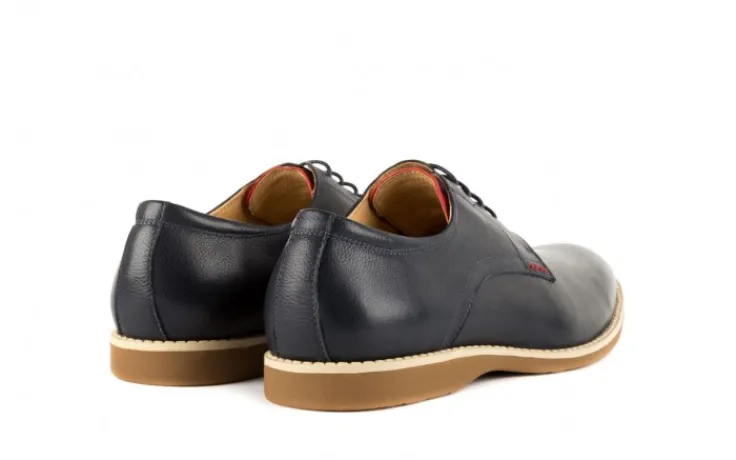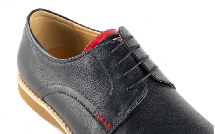 Eleganckie obuwie w kolorze granatowym z ozdobnymi przeszyciami na przodzie. Z przodu sznurowane. Podeszwy z tworzywa syntetycznego mają właściwości antypoślizgowe. Buty skutecznie chronią stopy przed zimnem. Zarówno wyściółka, jak i wkładka wykonana ze skóry naturalnej, co znacznie poprawi komfort podczas użytkowania.
