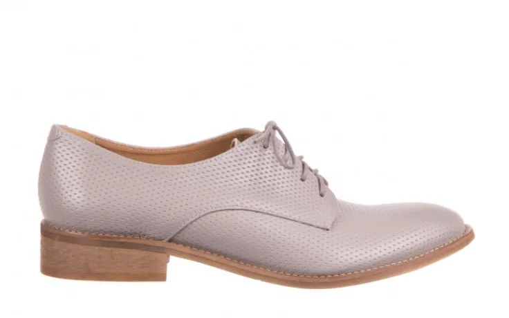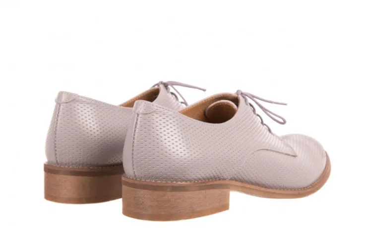 Cholewki wykonane są ze skóry naturalnej w kolorze szarym, perforowane w dziurkowany wzór.