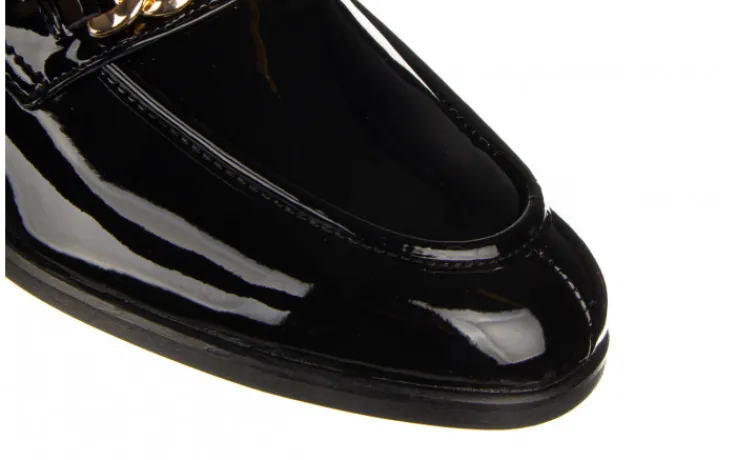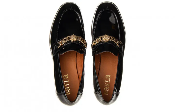 Mokasyny marki Bayla wykonane z naturalnej skóry lakierowanej w kolorze czarnym.