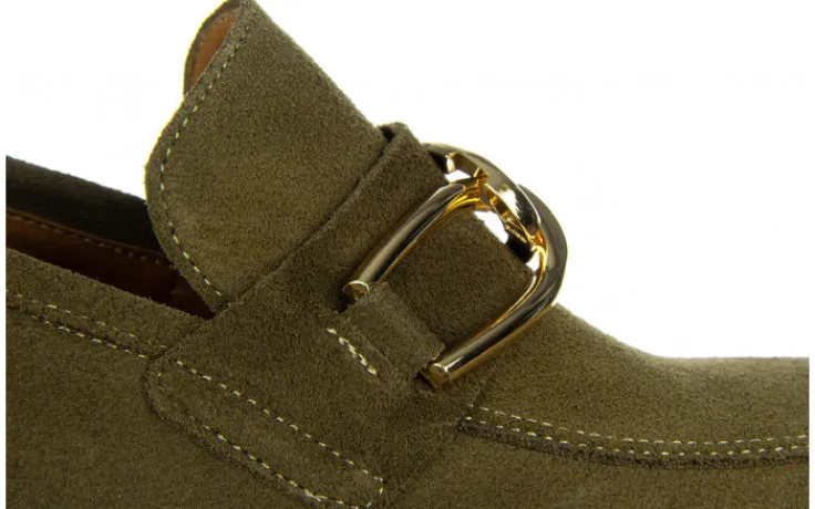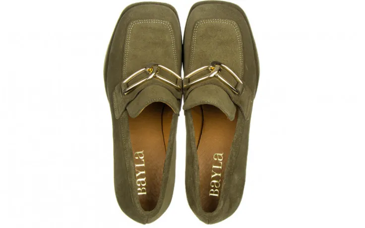Mokasyny marki Bayla wykonane z naturalnej skóry zamszowej w kolorze khaki.
