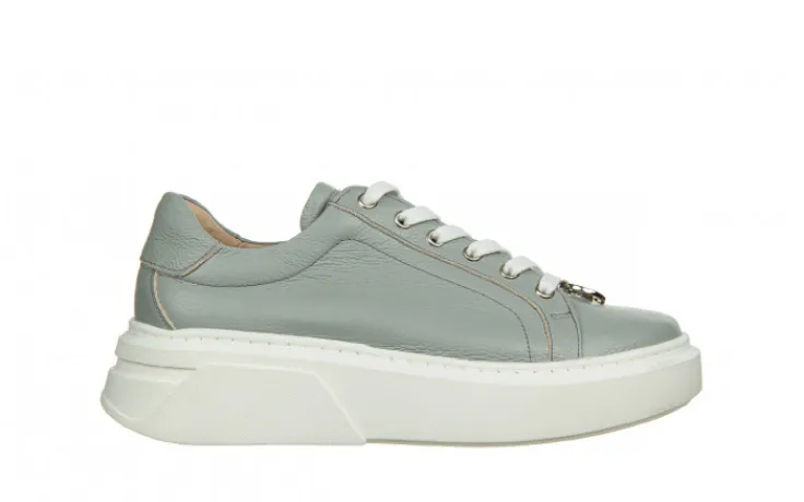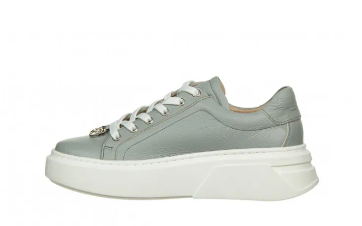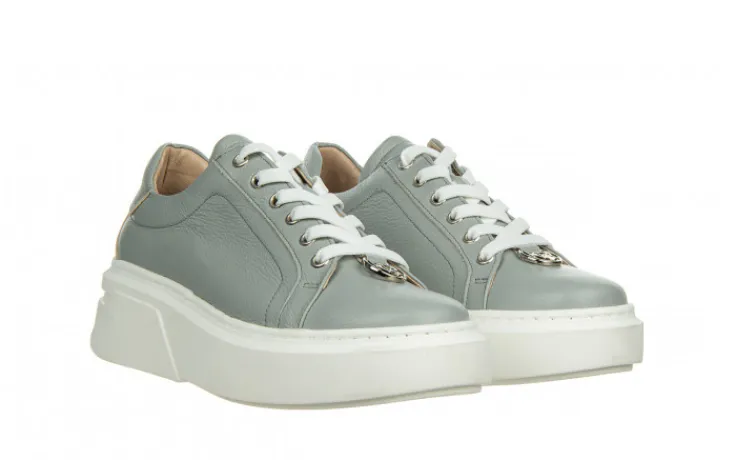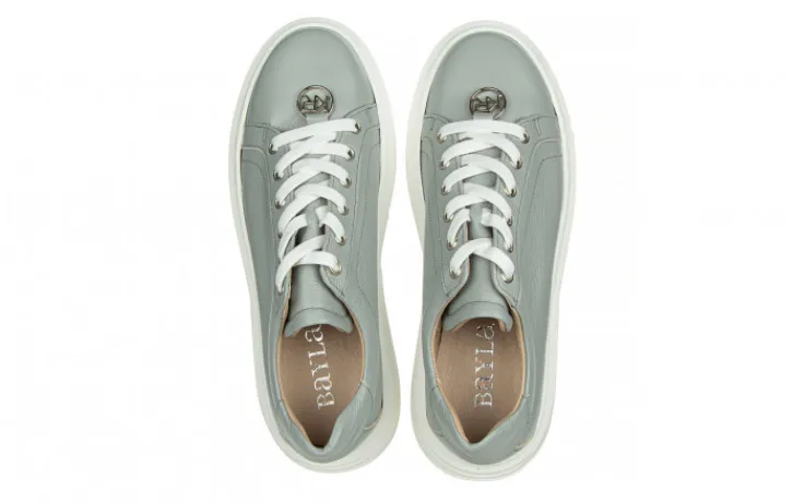 Półbuty marki Bayla wykonane z naturalnej skóry licowej w kolorze szaroniebieskim.