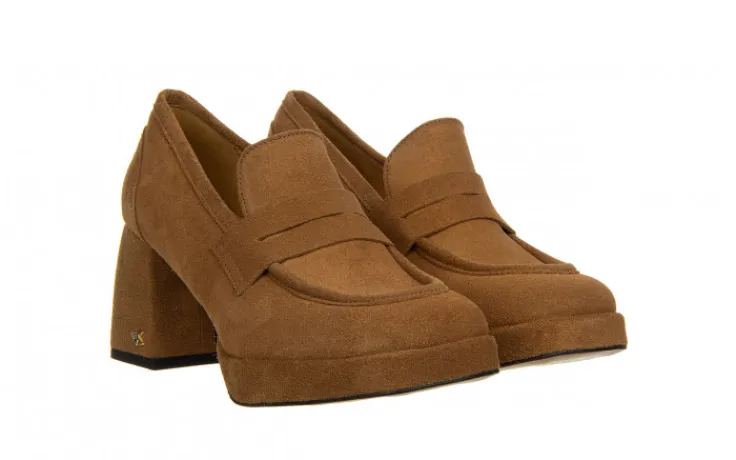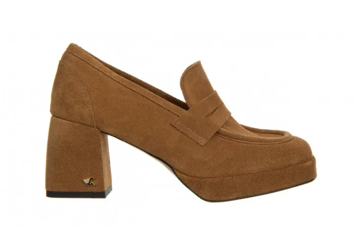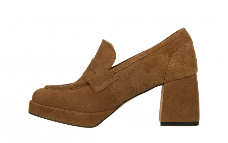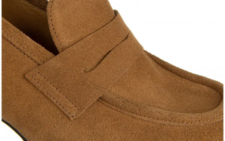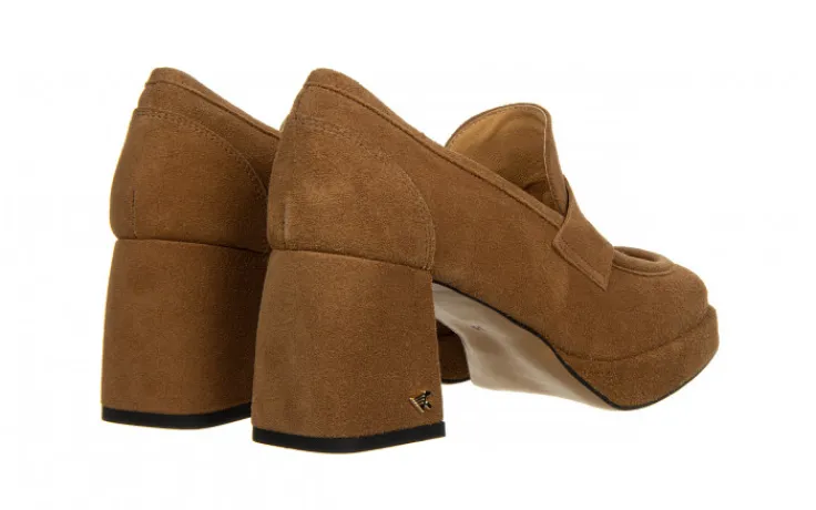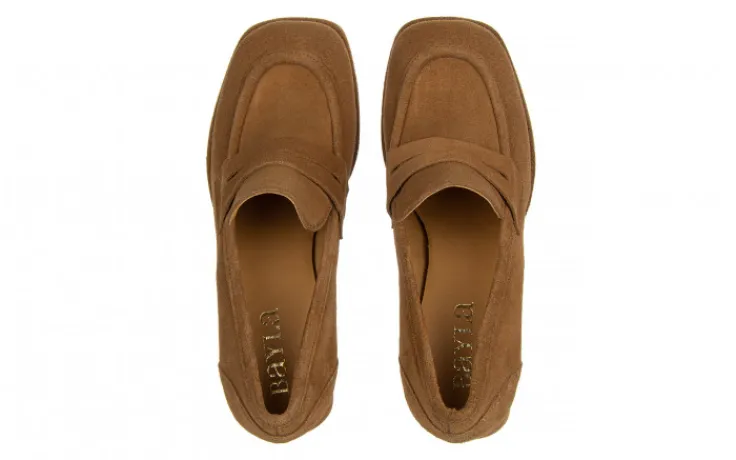 Półbuty marki Bayla wykonane z naturalnej skóry zamszowej w kolorze jasnobrązowy.