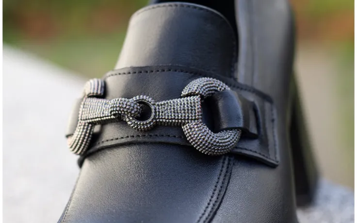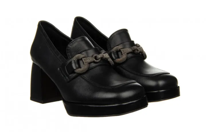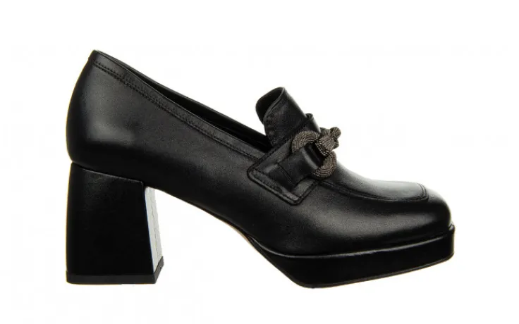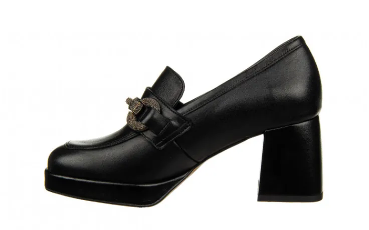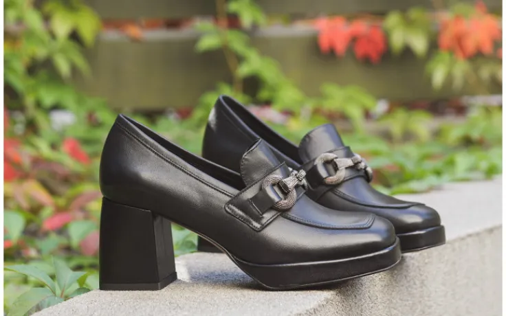 Półbuty wsuwane na słupku oraz platformie. Słupek zapewnia stabilność i wygodę, a platforma daje dodatkową wysokość, co jest szczególnie korzystne dla osób, które chcą optycznie wydłużyć nogi. Wkładka oraz wyściółka ze skóry naturalnej zapobiega poceniu się stóp oraz zapewnia odpowiednią cyrkulację powietrza we wnętrzu buta. Są to buty, które mogą być noszone zarówno na co dzień, jak i na bardziej formalne okazje.