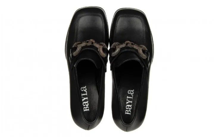 Półbuty marki Bayla wykonane z naturalnej skóry licowej w kolorze czarnym.