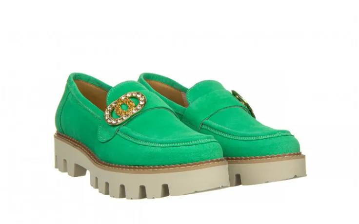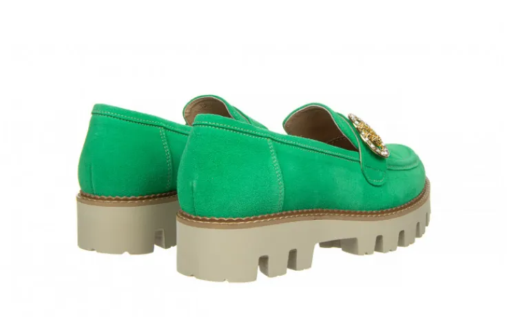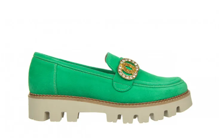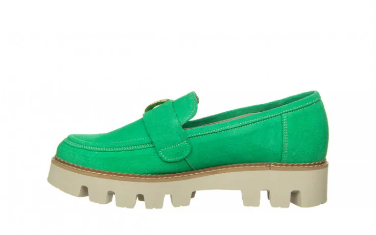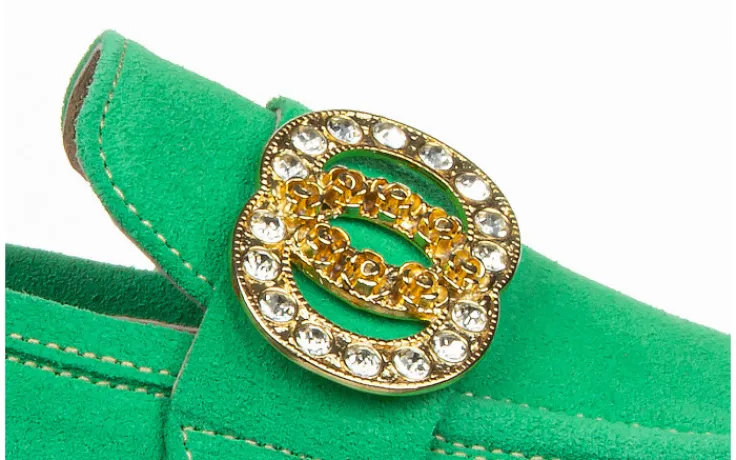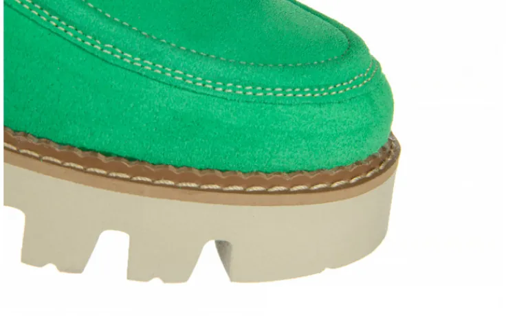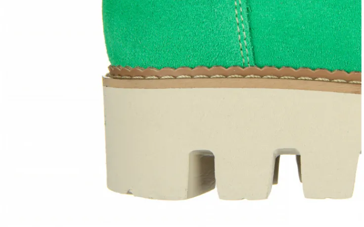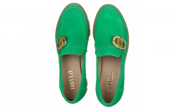 Półbuty marki Bayla wykonane ze skóry naturalnej zamszowej w kolorze seledynowym.