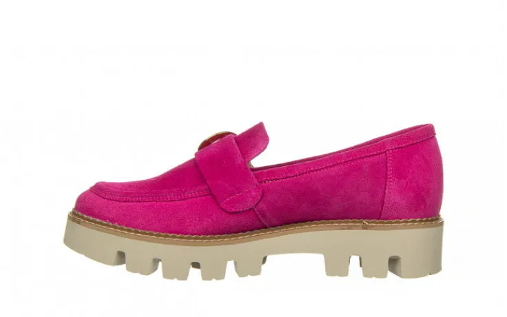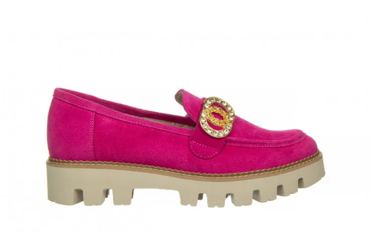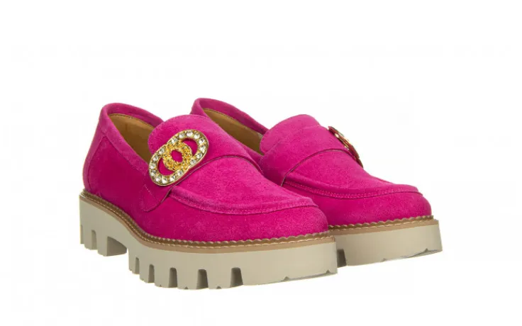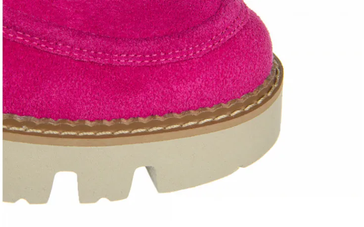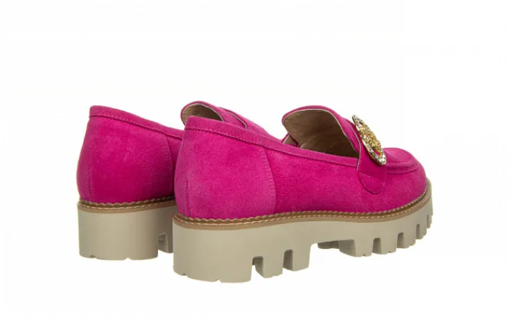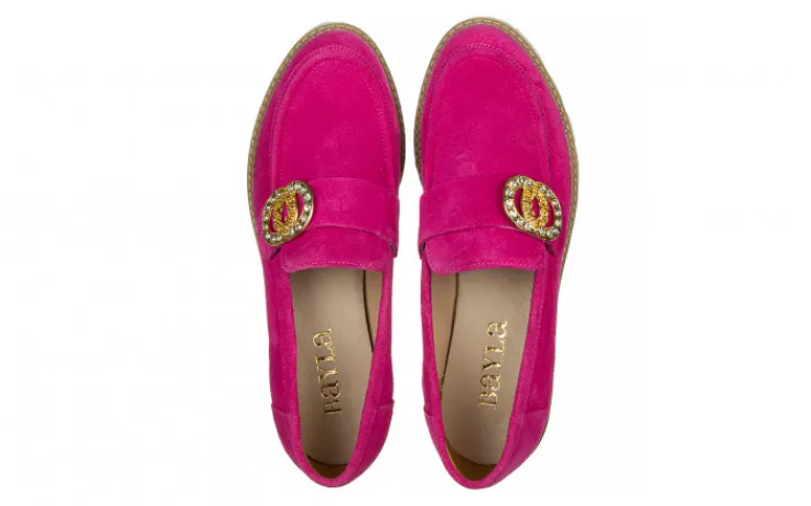 Półbuty marki Bayla wykonane ze skóry naturalnej zamszowej w kolorze fuksjowym.