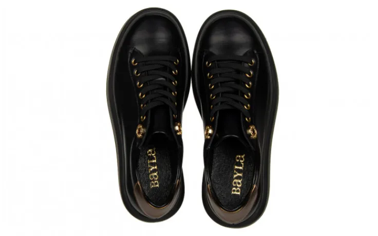Półbuty marki Bayla wykonane z naturalnej skóry licowej w kolorze czarnym.