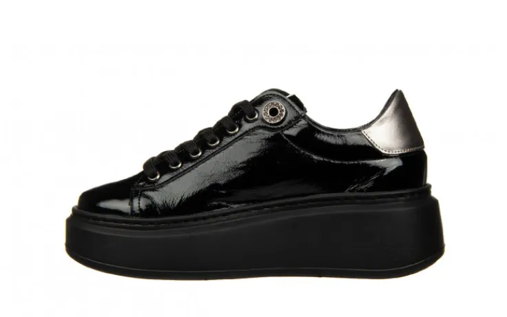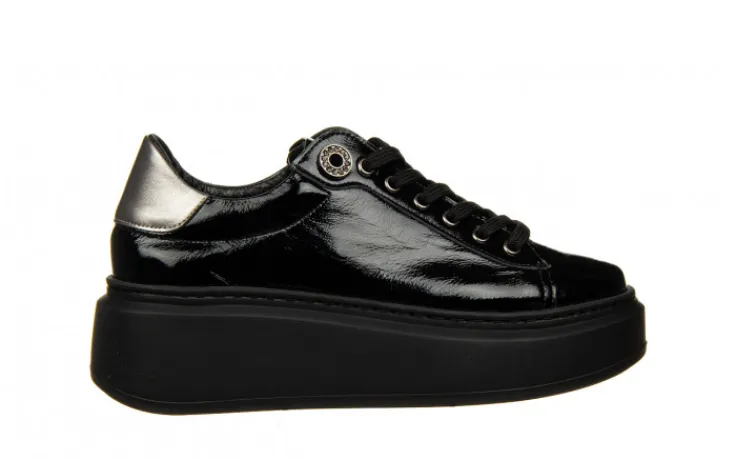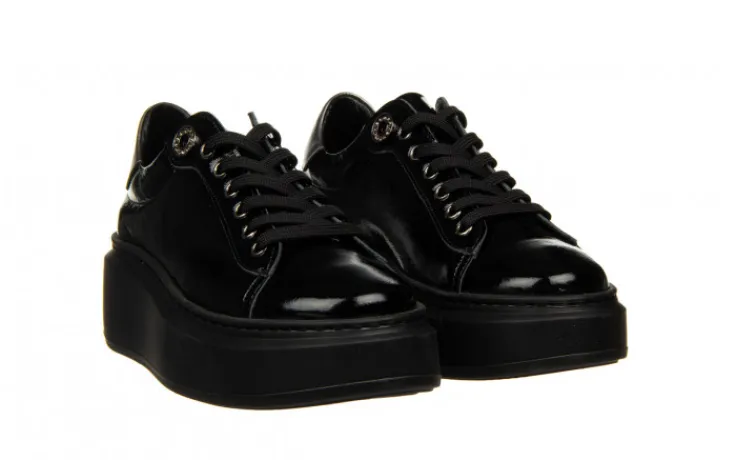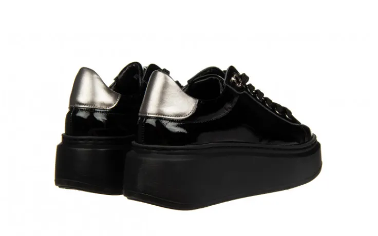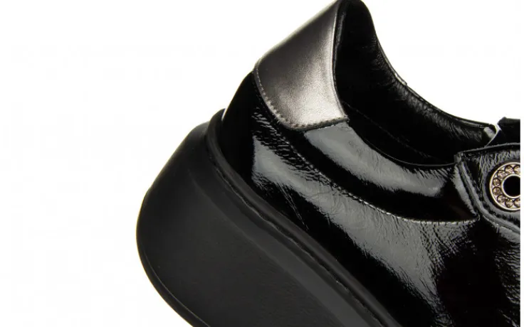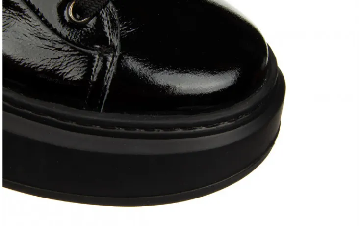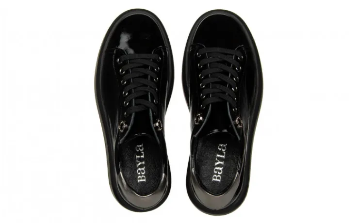 Półbuty marki Bayla wykonane z naturalnej skóry lakierowanej w kolorze czarnym.