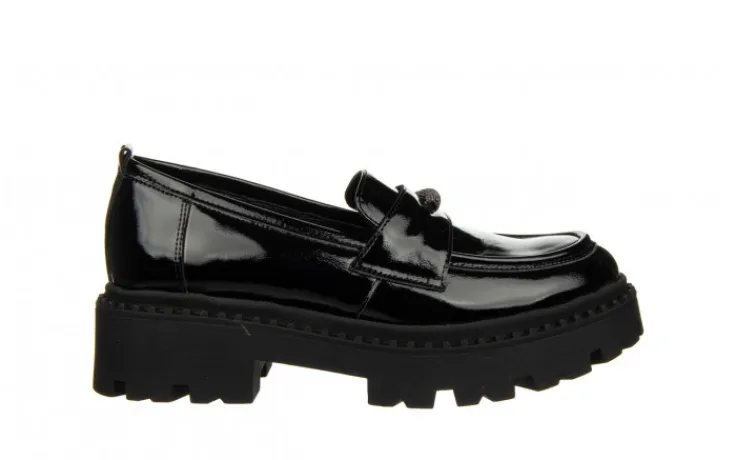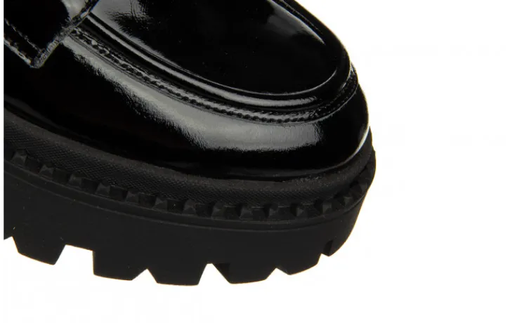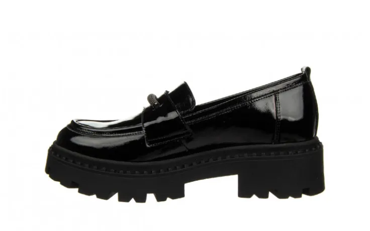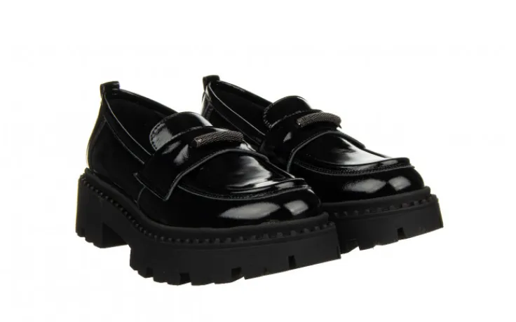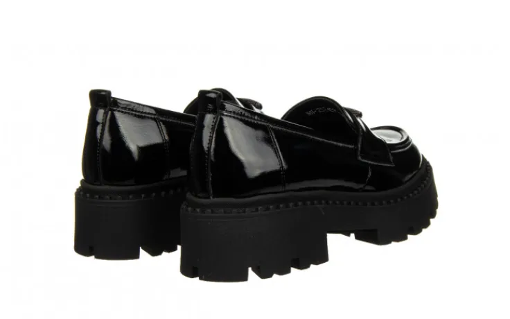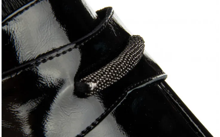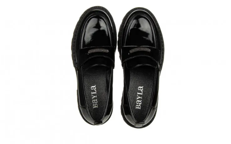 Półbuty marki Bayla wykonane z naturalnej skóry lakierowanej w kolorze czarnym.