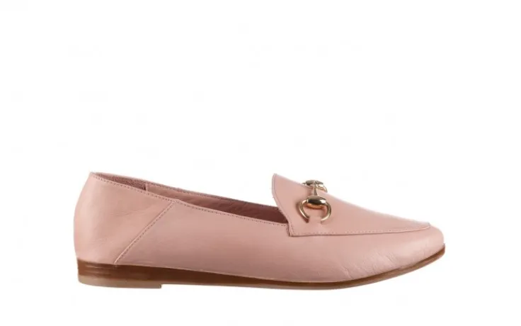 Półbuty marki BAYLA wykonane są w całości z naturalnej skóry licowej w kolorze pudrowego różu.