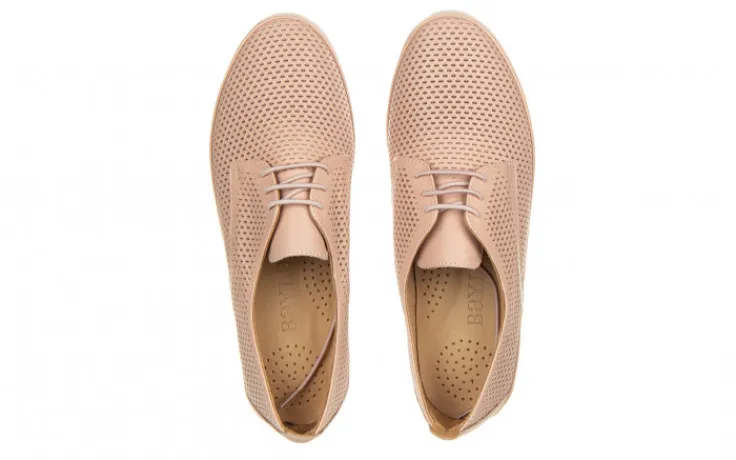 Półbuty marki Bayla wykonane ze skóry naturalnej w kolorze różowym.