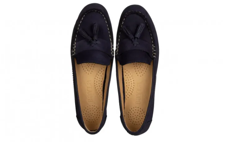 Półbuty marki Bayla wykonane ze skóry naturalnej nubukowej w kolorze granatowym.