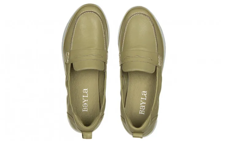 Półbuty marki BAYLA wykonane zostały z naturalnej skóry licowej w kolorze zielonym.