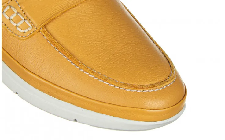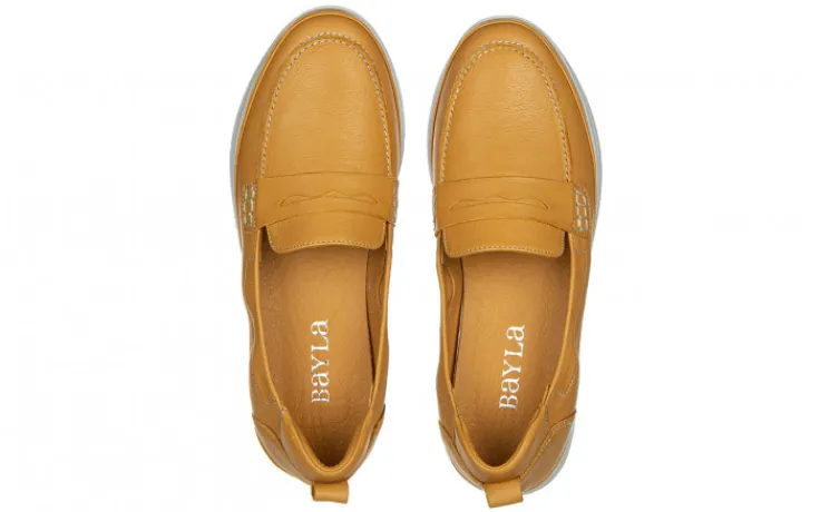 Półbuty marki BAYLA wykonane zostały z naturalnej skóry licowej w kolorze żółtym.