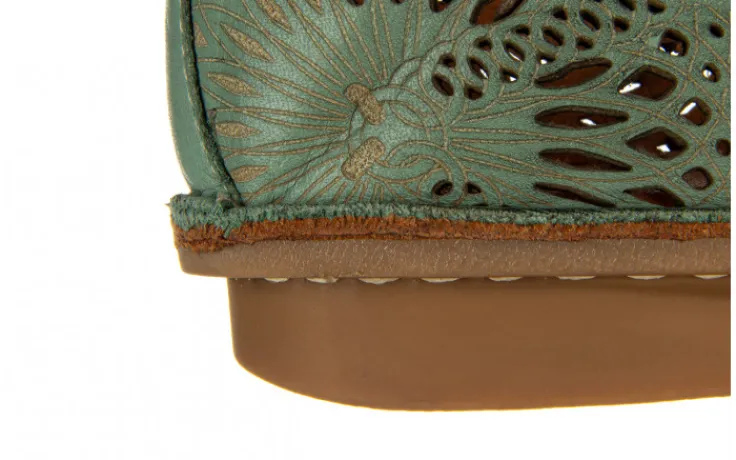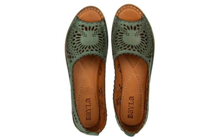Półbuty marki Bayla wykonane ze skóry naturalnej w kolorze spokojnej zieleni.