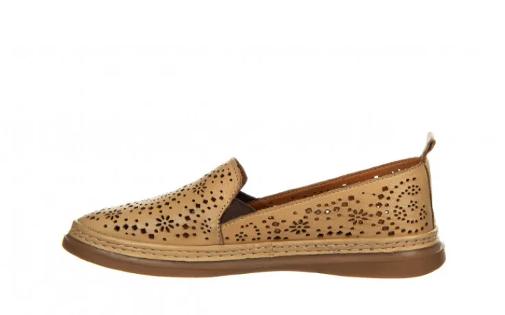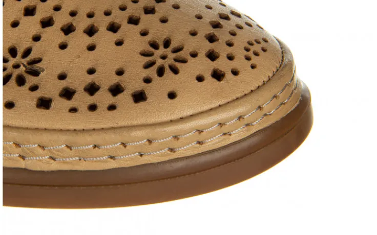 Oddychająca ażurowa cholewka z perforacją zapewnia odpowiednie odprowadzanie wilgoci z wnętrza buta. Skórzane wnętrze. Antypoślizgowa podeszwa zgina się na linii śródstopia, dzięki czemu pozwala stopie pracować. Oczuwalna miękkość to zasługa miękkich skór użytych w produkcji tego modelu.
