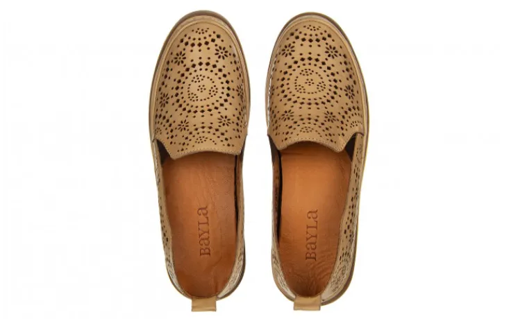 Półbuty marki Bayla wykonane ze skóry naturalnej w kolorze beżowym.