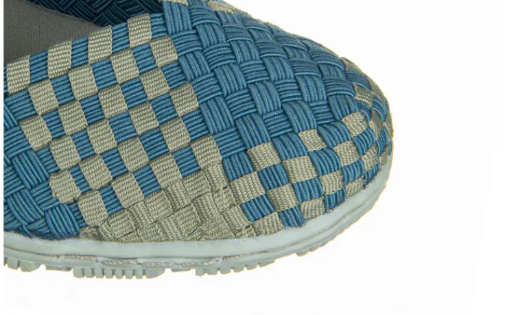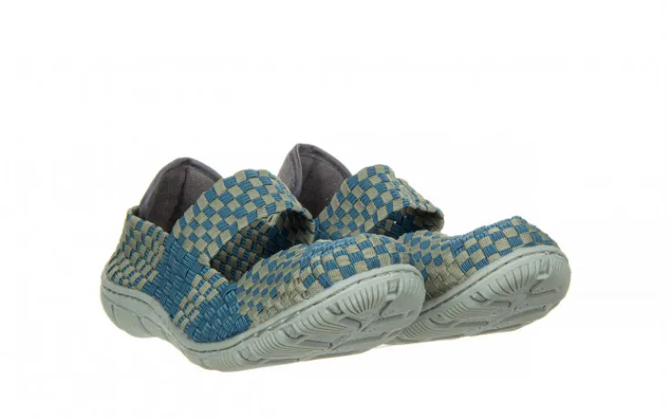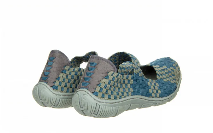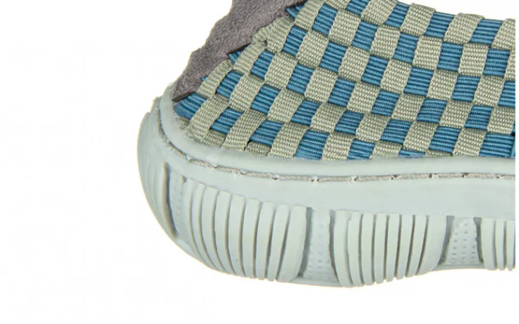Plecione cholewki zostały zrobione z wyjątkowo elastycznych gumek, dzięki czemu idealnie dopasowują się do indywidualnego kształtu (tęgości) stopy. Bardzo miękkie, piankowe wkładki oraz lekkie, antypoślizgowe podeszwy sprawiają, że buty są bardzo wygodne. Ponadto zapiętek wykonany z miłego w dotyku zamszu niweluje możliwość otarć pięty. Przez środek biegnie gruby pleciony pasek utrzymujący stopę w miejscu. Model jest lekki, co bardzo dobrze wpływa na komfort użytkowania. Dodatkowym atutem butów jest możliwość prania w temperaturze 40 stopni.