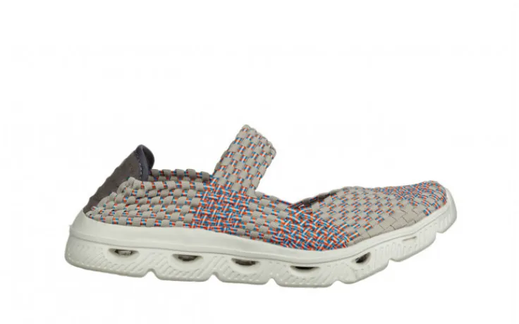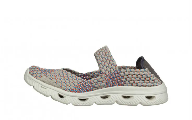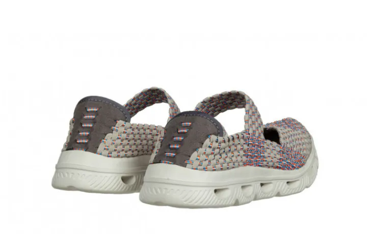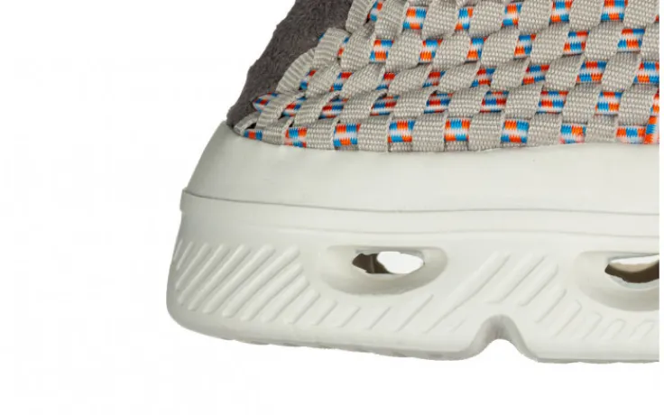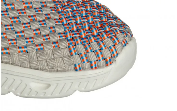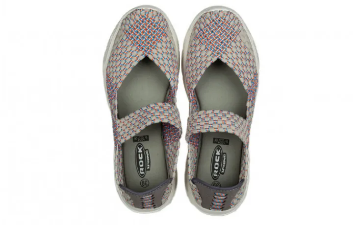 Plecione cholewki zostały zrobione z wyjątkowo elastycznych gumek, dzięki czemu idealnie dopasowują się do indywidualnego kształtu (tęgości) stopy. Bardzo miękkie, piankowe wkładki oraz lekkie, antypoślizgowe podeszwy sprawiają, że buty są bardzo wygodne. Ponadto zapiętek wykonany z miłego w dotyku zamszu niweluje możliwość otarć pięty. Przez środek biegnie gruby pleciony pasek utrzymujący stopę w miejscu. Model jest lekki, co bardzo dobrze wpływa na komfort użytkowania. Dodatkowym atutem butów jest możliwość prania w temperaturze 40 stopni.
