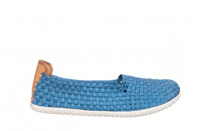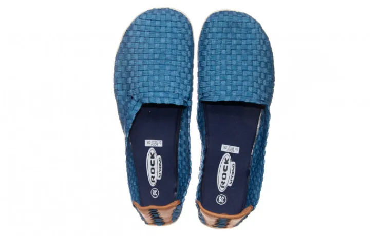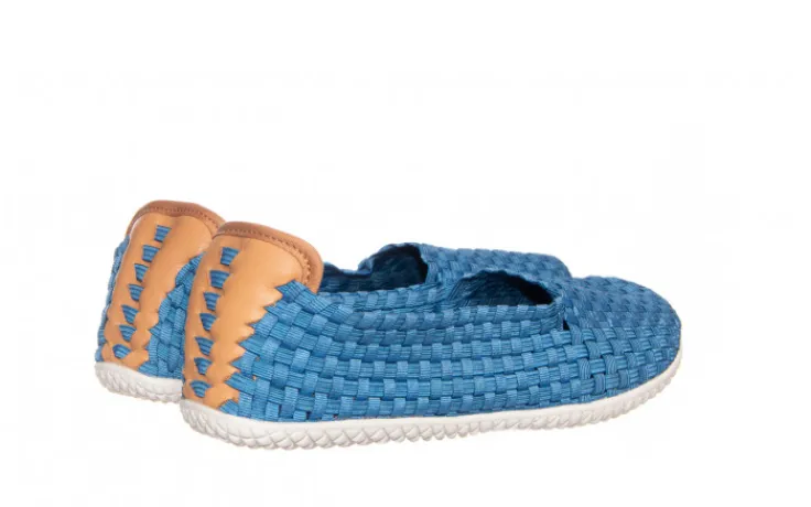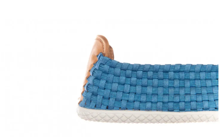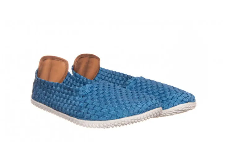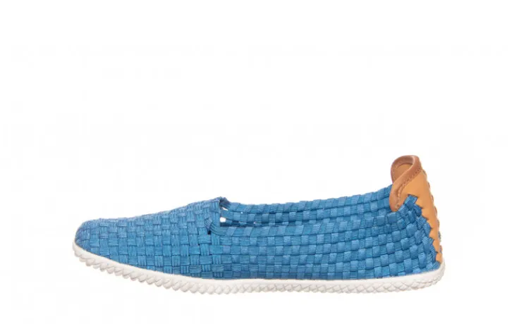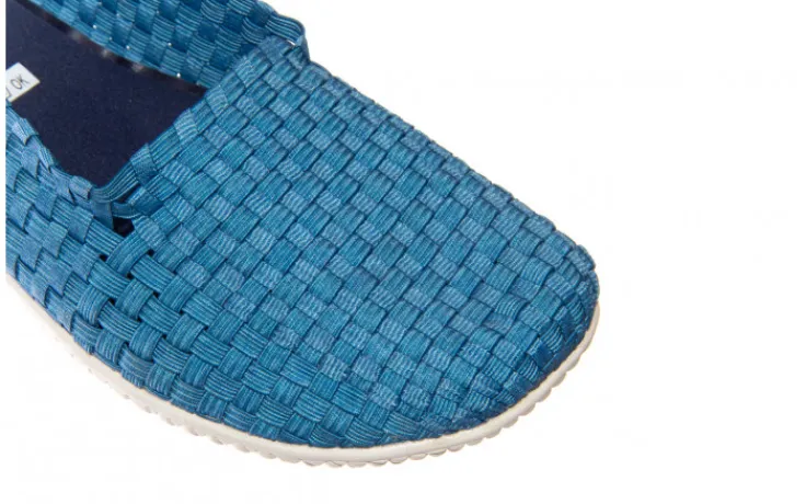 Plecione cholewki z wyjątkowo elastycznych gumek w kolorze niebieskim. Buty idealnie dopasowują się do indywidualnego kształtu (tęgości) każdej stopy. Miękka, piankowa wkładka z profilowaniem przy podbiciu i pod piętą oraz lekkie, antypoślizgowe podeszwy sprawiają, że buty są bardzo wygodne. Ponadto zapiętek z miłej w dotyku skóry, niweluje możliwość otarć pięty. Dodatkowym atutem buta jest możliwość prania w temperaturze 40 stopni.