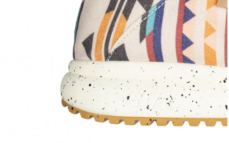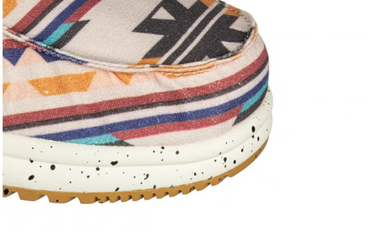 Model Mundaka to ultralekkie, letnie półbuty wsuwane. Cholewka wykonana ze 100% bawełny – zapewnia oddychalność i wygodę. Wzór inspirowany motywem Azteków. Zapiętek z możliwością zgięcia, umożliwiając użytkowanie ich jak klapki. Miękka bawełniana podszewka. Antypoślizgowa, przyczepna gumowa podeszwa zewnętrzna w dopasowanym kolorze cholewki. Ultralekka, amortyzująca podeszwa środkowa z pianki EVA, która zapewnia zarówno wsparcie, jak i amortyzację. Oddychająca skórzana wkładka Pitas Comfort z wyprofilowaniem.