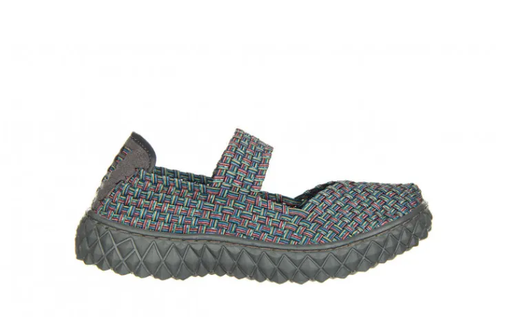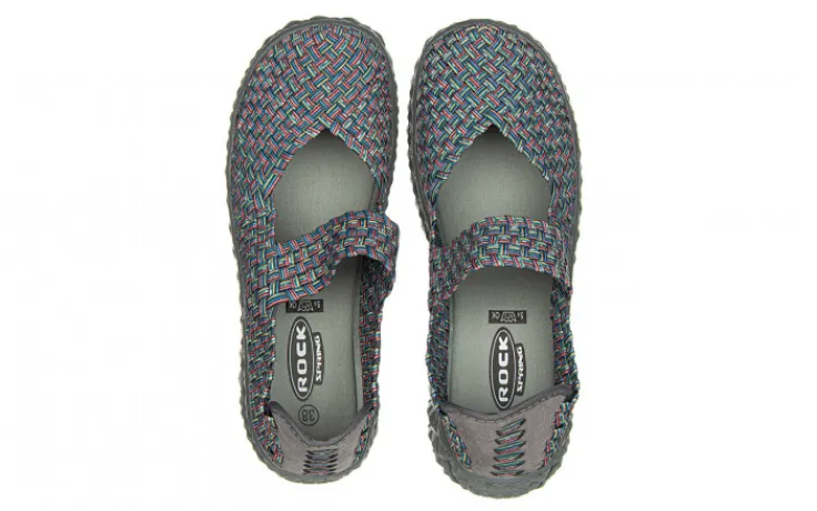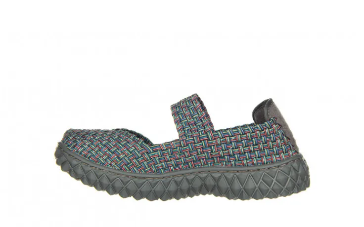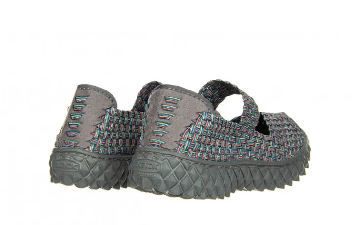 Plecione cholewki z wyjątkowo elastycznych gumek idealnie dopasowują się do indywidualnego kształtu (tęgości) stopy. Miękka, piankowa wkładka oraz lekkie, antypoślizgowe podeszwy sprawiają, że buty są bardzo wygodne. Ponadto zapiętek z miłego w dotyku zamszu niweluje możliwość otarć pięty. Przez środek biegnie gruby pleciony pasek utrzymujący stopę w miejscu. Dodatkowym atutem buta jest możliwość prania w temperaturze 40 stopni.