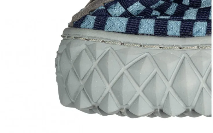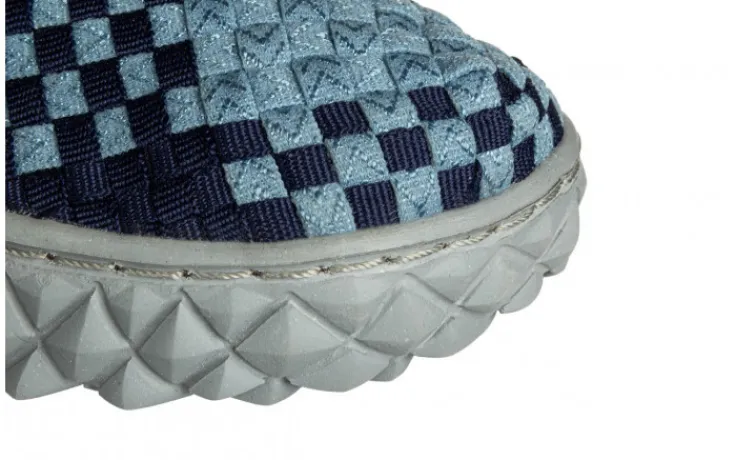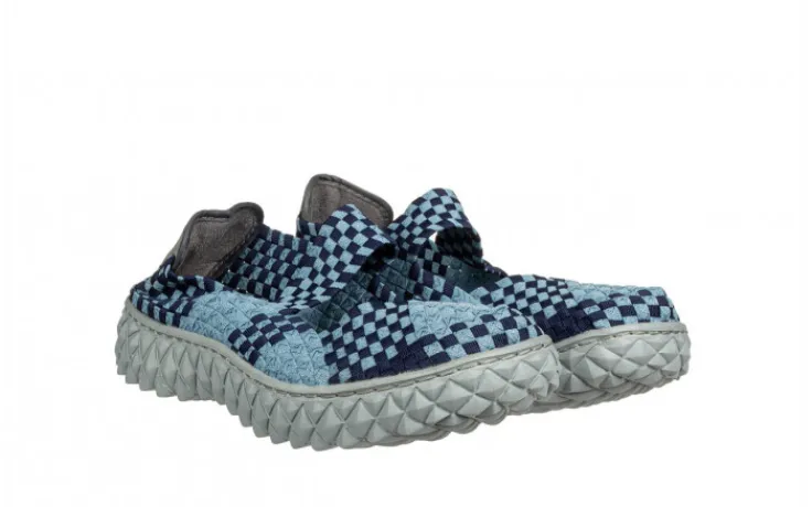 Plecione cholewki z wyjątkowo elastycznych gumek idealnie dopasowują się do indywidualnego kształtu (tęgości) każdej stopy. Miękka, piankowa wkładka oraz lekkie, antypoślizgowe podeszwy sprawiają, że buty są bardzo wygodne. Zapiętek z miłego w dotyku zamszu niweluje możliwość otarć pięty. Przez środek biegnie gruby pleciony pasek utrzymujący stopę w miejscu. Model jest lekki, co bardzo dobrze wpływa na komfort użytkowania. Dodatkowym atutem buta jest możliwość prania w temperaturze 40 stopni.