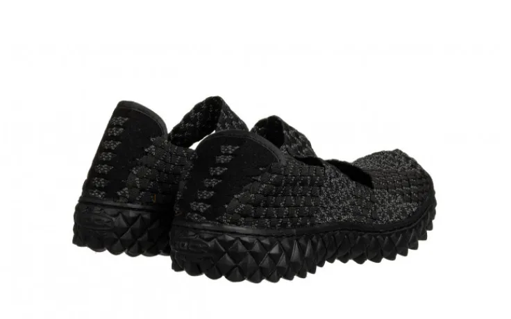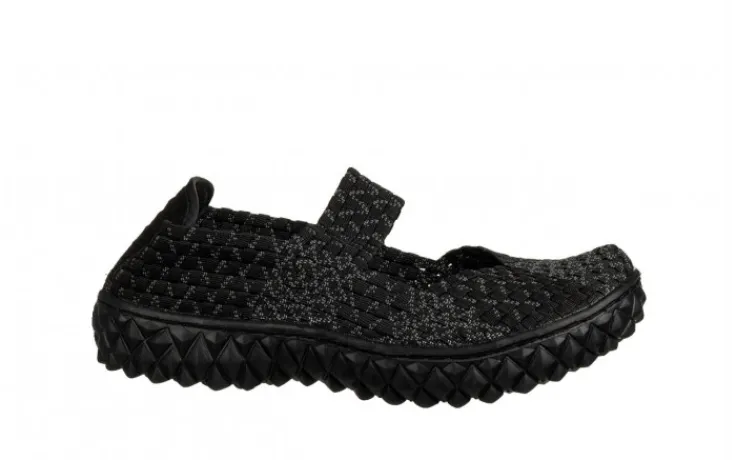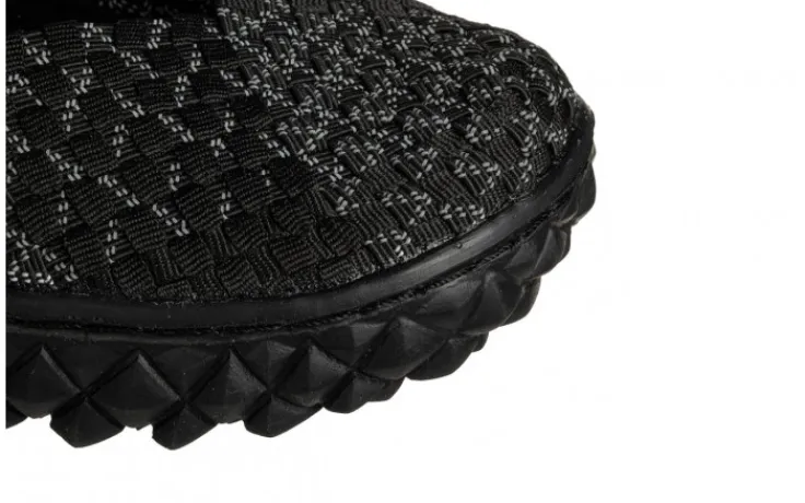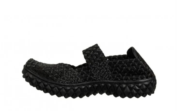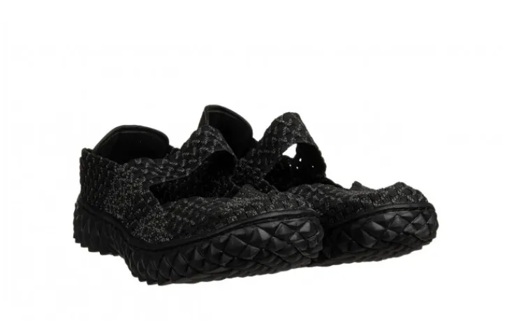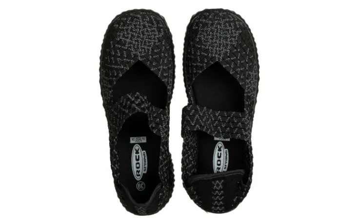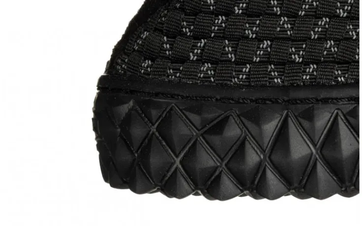 Plecione cholewki z wyjątkowo elastycznych gumek w kolorze czarnym idealnie dopasowują się do indywidualnego kształtu (tęgości) każdej stopy. Miękka, piankowa wkładka z profilowaniem przy podbiciu i pod piętą oraz lekkie, antypoślizgowe podeszwy sprawiają, że buty są bardzo wygodne. Ponadto zapiętek z miłego w dotyku zamszu niweluje możliwość otarć pięty. Przez środek biegnie gruby pleciony pasek utrzymujący stopę w miejscu. Dodatkowym atutem buta jest możliwość prania w temperaturze 40 stopni.