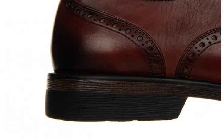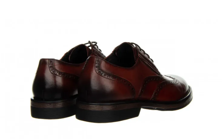 Buty wykonane z wysokogatunkowej skóry naturalnej. Ponadczasowy fason oraz ciekawy design z ażurowanymi zdobieniami. Czubek oraz zapiętek efektownie przyciemniany. Obuwie sznurowane. W cholewkę wszyte wstawki z elastycznej gumy, zwiększające komfort podczas chodu. Podeszwa została wykonana z antypoślizgowej gumy, co z całą pewnością przy intensywnym używaniu przedłuży żywotność obuwia. Wkładka oraz wyściółka zrobione są ze skóry naturalnej zapobiegającej poceniu się stóp oraz zapewniającej odpowiednią cyrkulację powietrza we wnętrzu buta. Buty w atrakcyjnym, casualowym stylu znakomicie prezentują się z codziennymi stylizacjami.