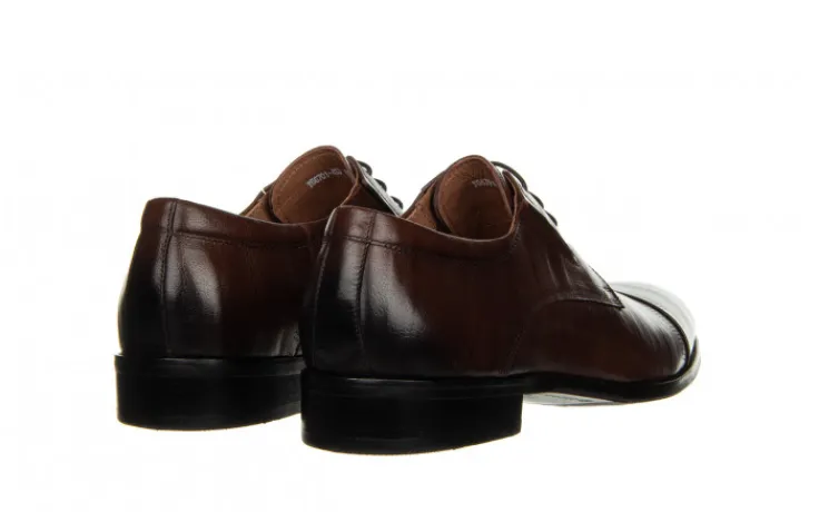 Buty wykonane z wysokogatunkowej skóry naturalnej w klasycznym fasonie sprawdzą się na każdą porę roku. To doskonałe buty dla mężczyzny ceniącego klasykę. Obuwie sznurowane. Czubek oraz zapiętek efektownie przyciemniany. Antybakteryjna wkładka oraz wyściółka ze skóry naturalnej zapobiegającej poceniu się stóp oraz zapewniającej odpowiednią cyrkulację powietrza we wnętrzu buta. Podeszwa została wykonana z antypoślizgowej gumy.