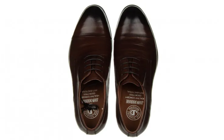 Półbuty marki John Doubare wykonane ze skóry naturalnej licowej w kolorze brązowym.