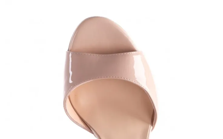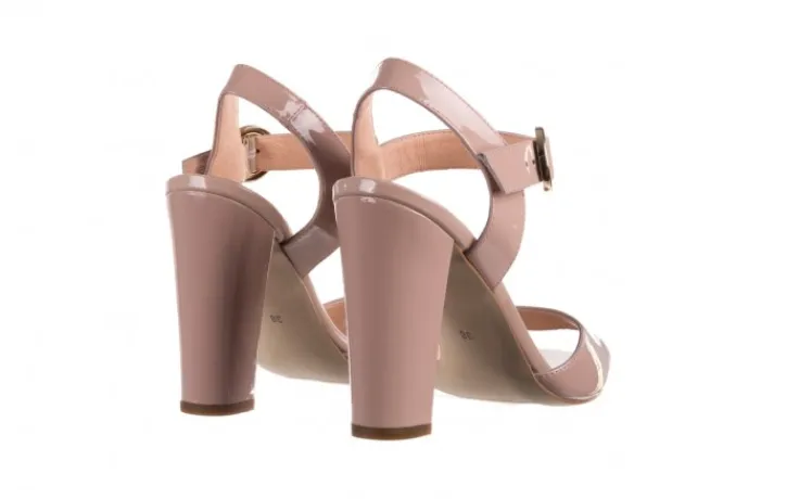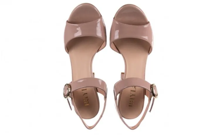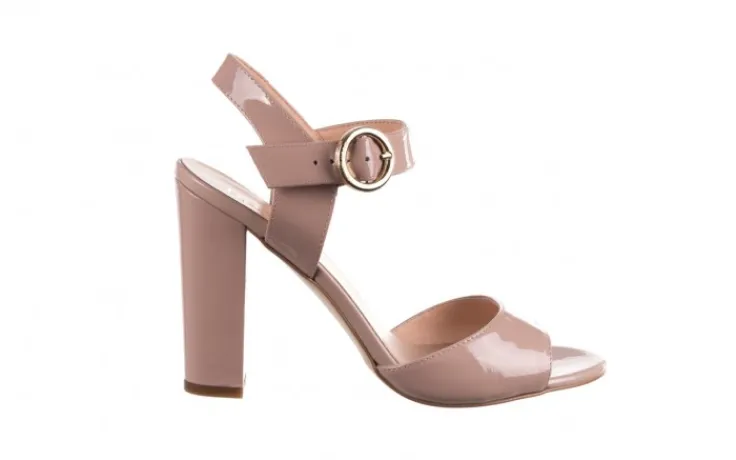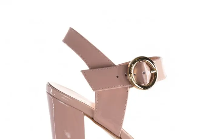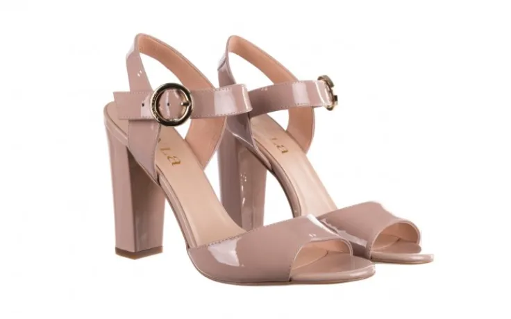 Sandały marki BAYLA wykonane ze skóry naturalnej lakierowanej w kolorze beżowym.