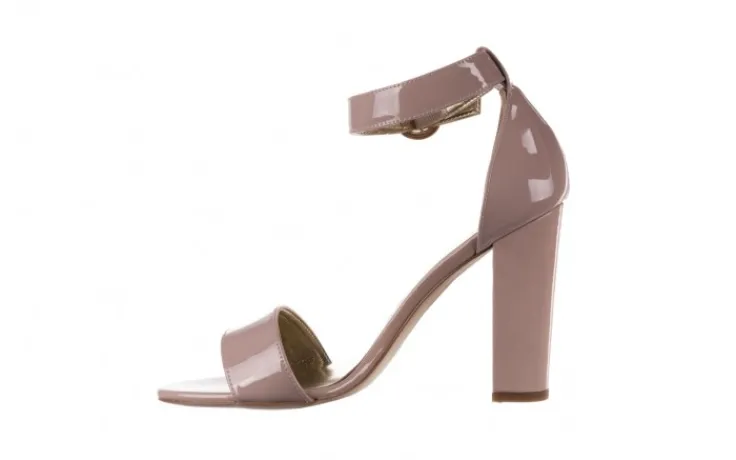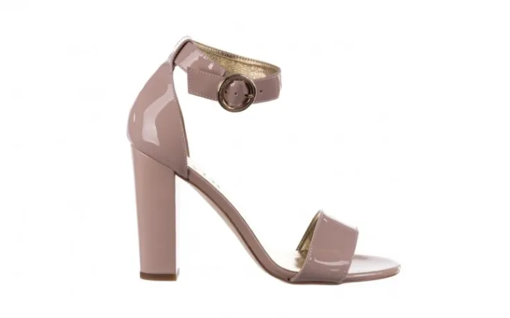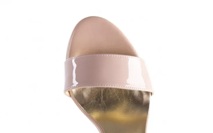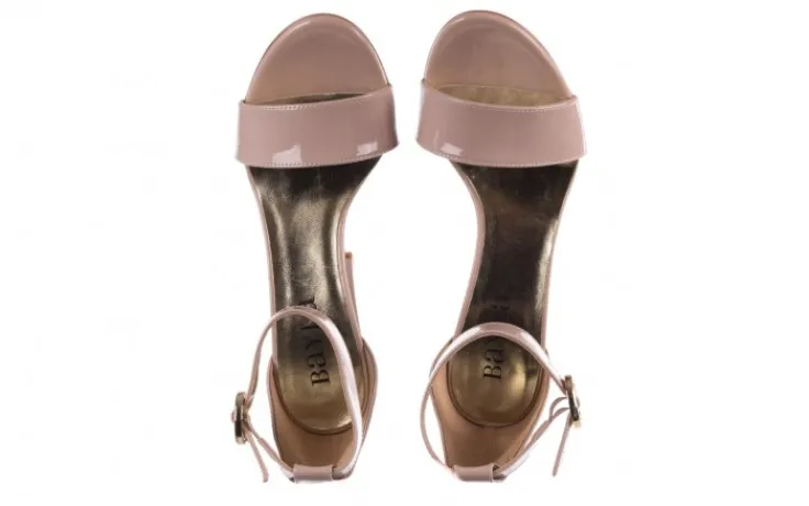 Sandały marki BAYLA wykonane ze skóry naturalnej lakierowanej w kolorze beżowym.