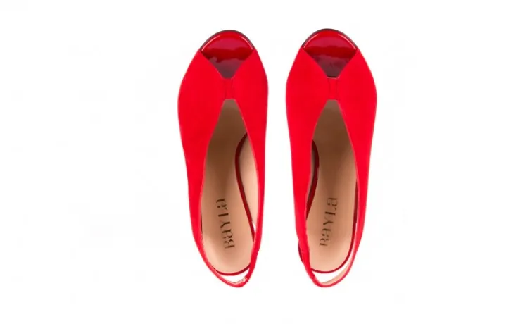 Sandały typu open toe marki BAYLA z linii Exclusive wykonane z naturalnej skóry zamszowej w kolorze czerwonym.