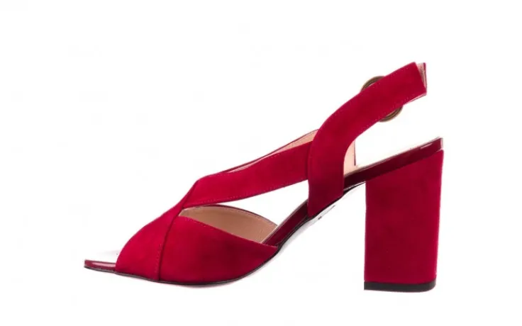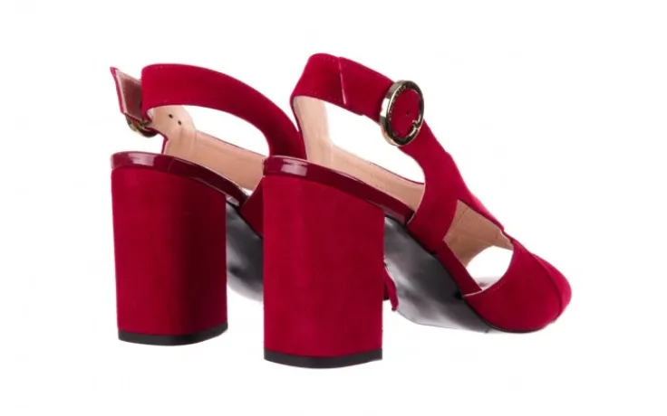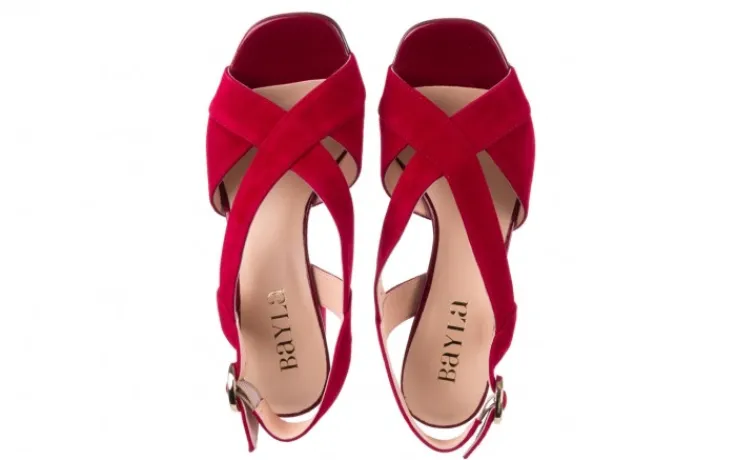 Sandały marki BAYLA wykonane ze skóry naturalnej zamszowej w kolorze burgundowym.