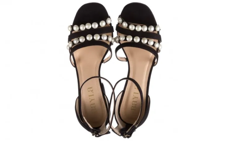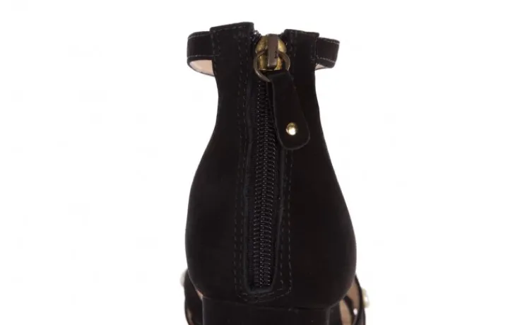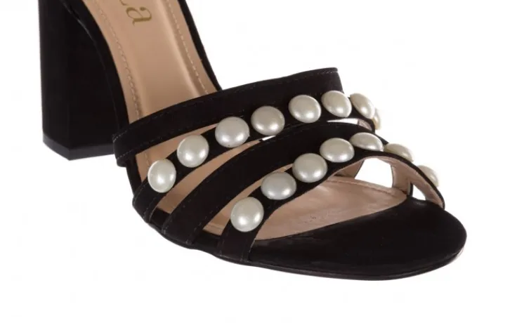 Model składa się z czterech paseczków połączonych ze sobą, ozdobione perełkami. Zasuwane z tyłu na zamek. Z zakrytą piętą. Miękka, profilowana wkładka wykonana jest w całości ze skóry naturalnej, co znacznie podwyższa komfort użytkowania. Dzięki grubemu, klockowemu obcasowi sandały są stabilne i wygodne.