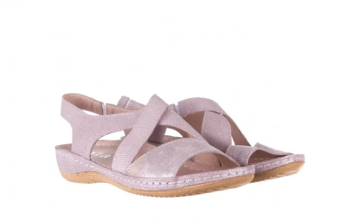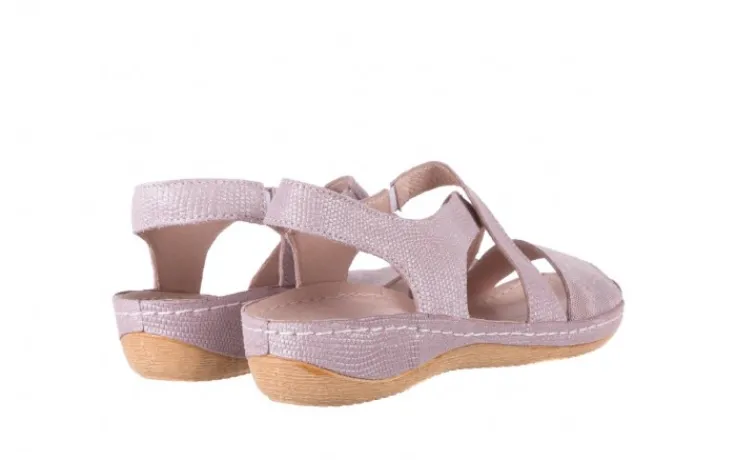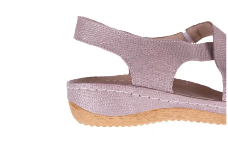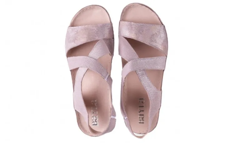Sandały marki BAYLA wykonane są w całości z naturalnej skóry licowej w kolorze liliowym delikatnie nabłyszczane.