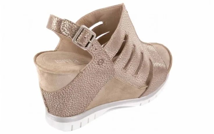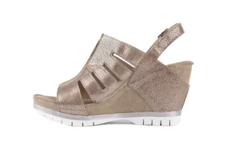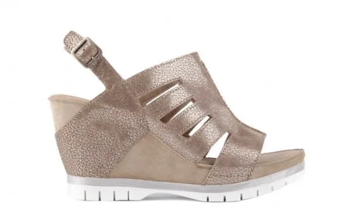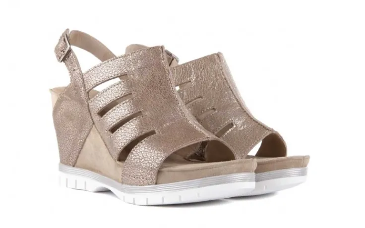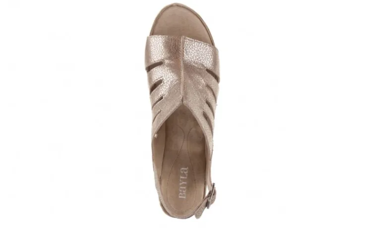 Sandały marki Bayla. Beżowa kolorystyka bardzo ładnie skomponuje się z letnimi strojami. Koturny zostały tak wyprofilowane aby zapewnić stopom wygodę przez cały dzień.