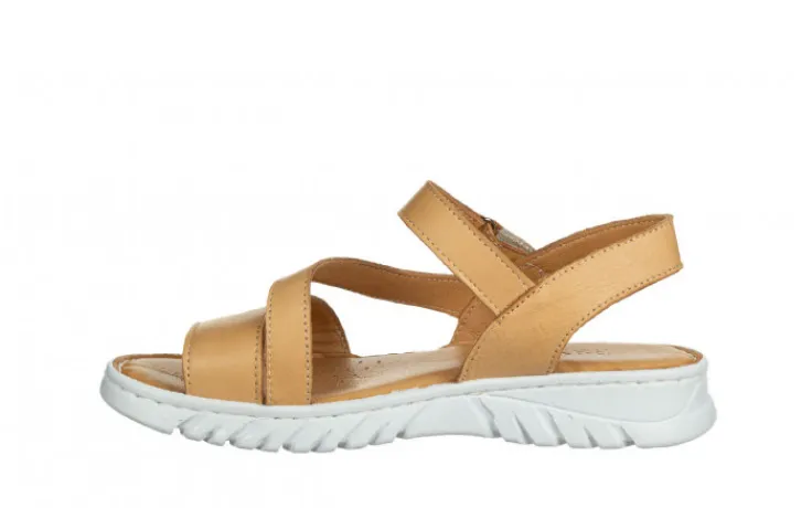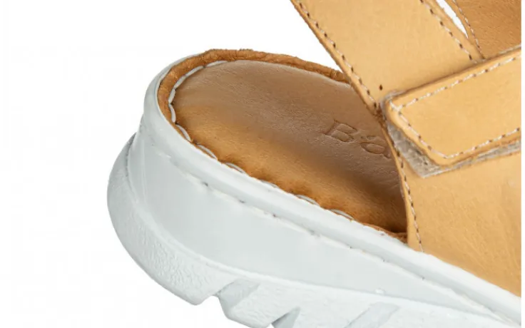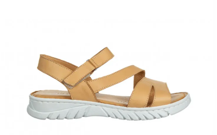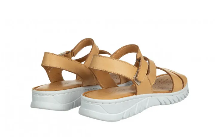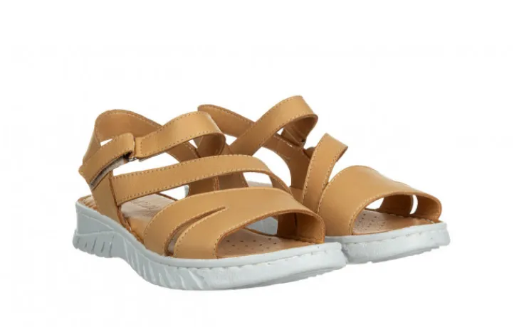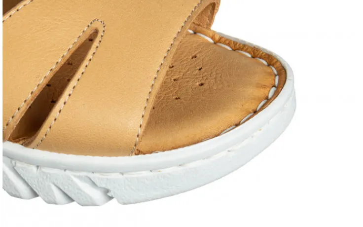 Sandały na płaskim z paskiem regulowanym na rzep. Miękkie skórzane, oddychające wkładki. Elastyczna podeszwa z gumy. Obuwie jest lekkie, co pozytywnie wpływa na komfort użytkowania. Buty idealnie sprawdzą się podczas ciepłych, letnich dni.