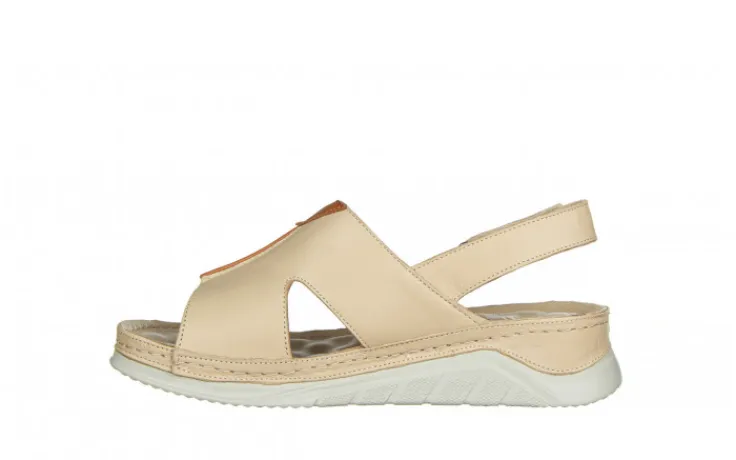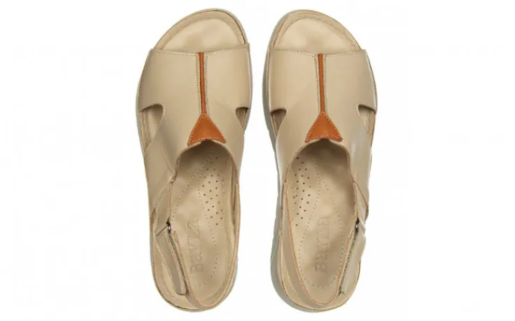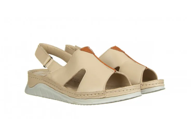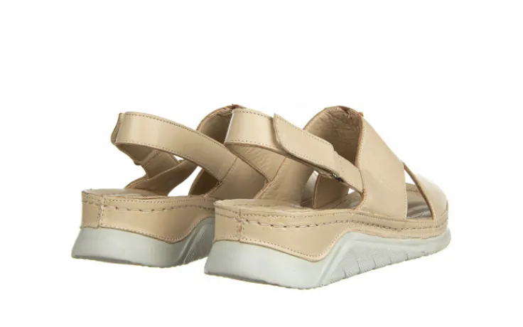 Sandały marki Bayla na niskim koturnie wykonane ze skóry naturalnej w kolorze beżowym.