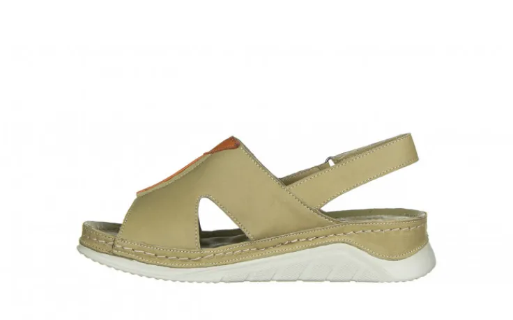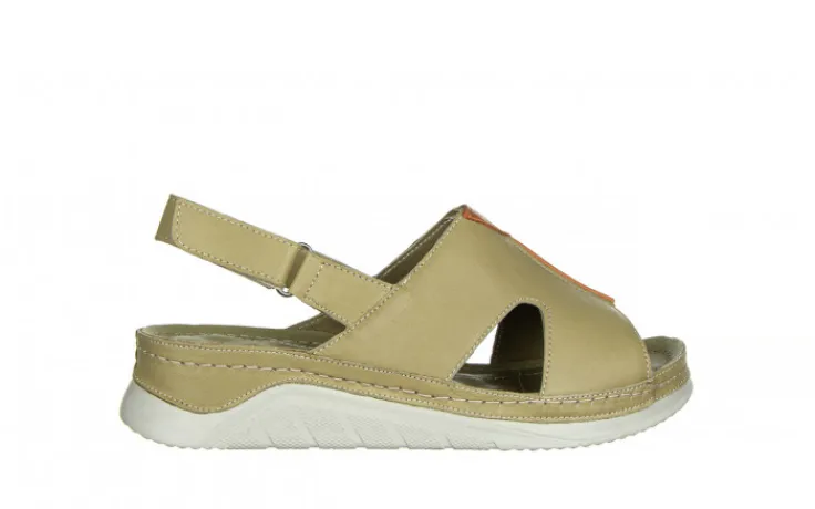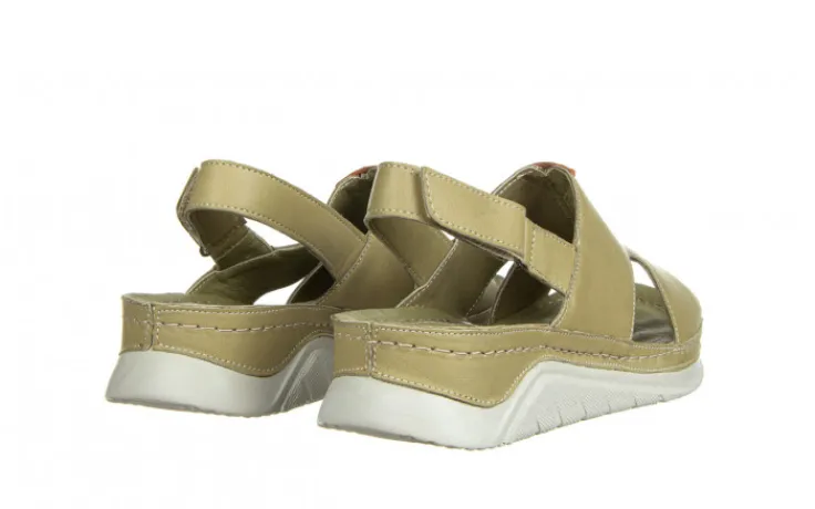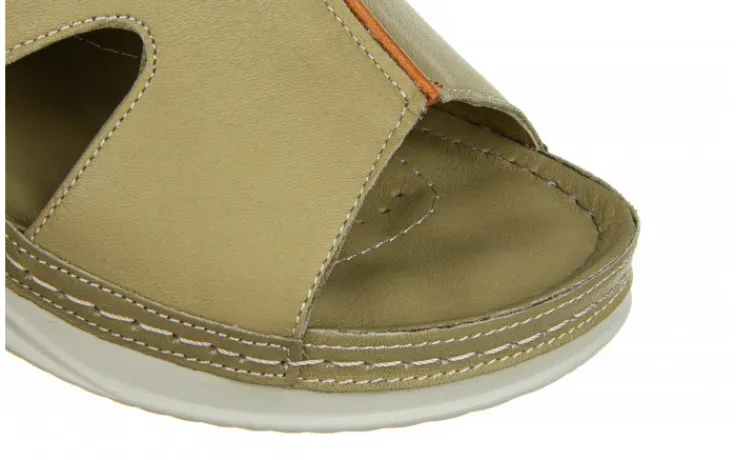Szersza cholewka z efektownymi wycięciami po bokach z paskiem sięgającym za piętę zapinanym na rzepę. Przy produkcji tego modelu zastosowane zostały skórzane, oddychające wkładki. Ich miękkość i odpowiednie wyprofilowanie zwiększa amortyzację oraz umożliwia łatwiejsze krążenie powietrza. Sandały posiadają grubsze spody dla dodatkowej stabilności. Podeszwa amortyzuje i chroni stopy podczas chodzenia po kamieniach, żwirze i innych nierównościach. Oryginalny fason sprawia, że to buty, które uniwersalnie dopasują się do wielu stylizacji.