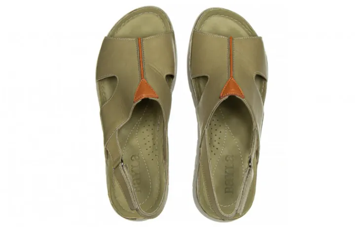 Sandały marki Bayla na niskim koturnie wykonane ze skóry naturalnej w kolorze zielonym.