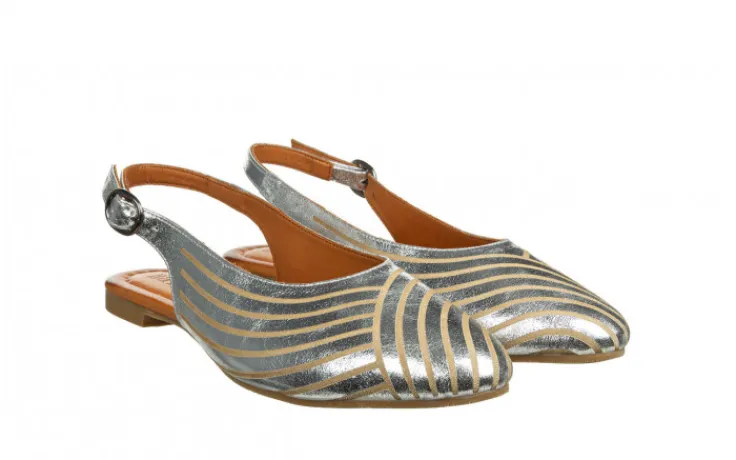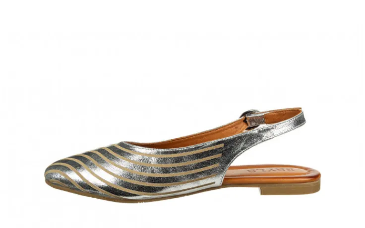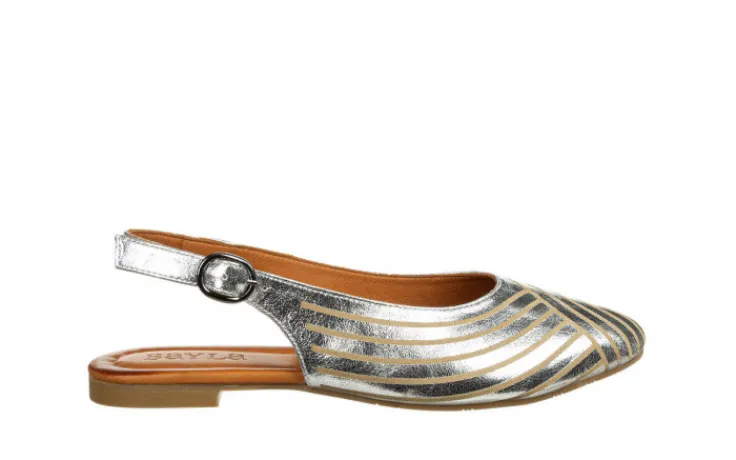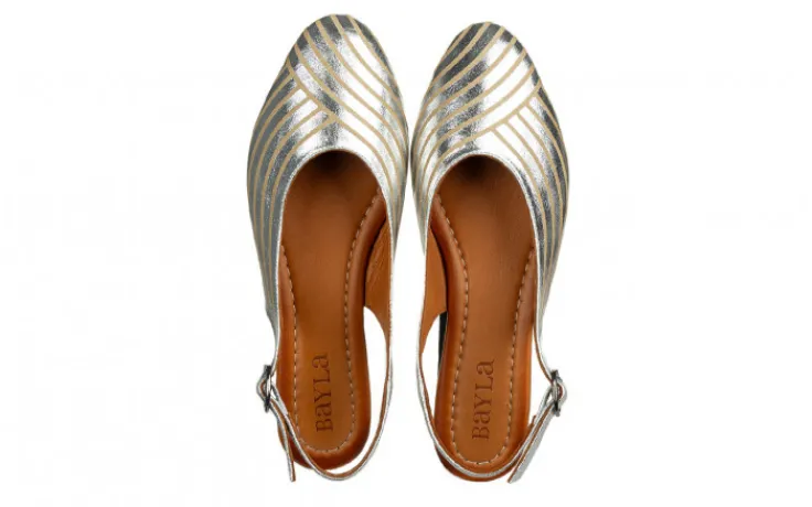 Sandały marki Bayla wykonane ze skóry naturalnej w kolorze srebrnym.