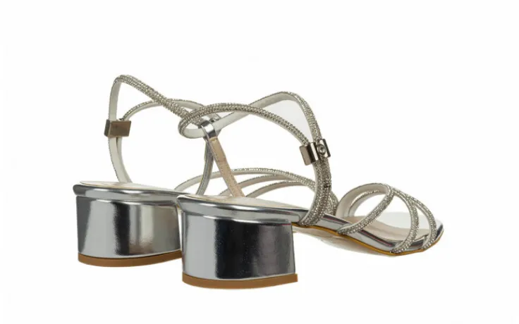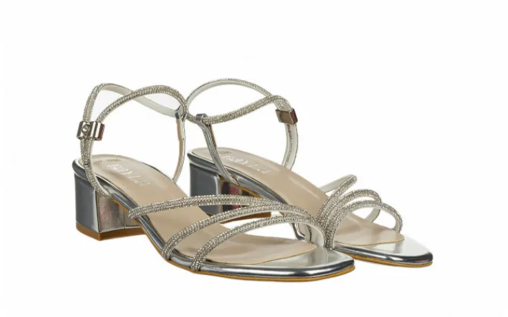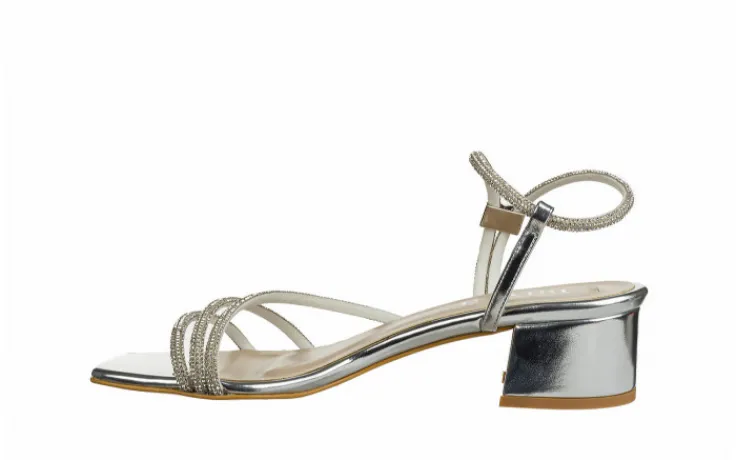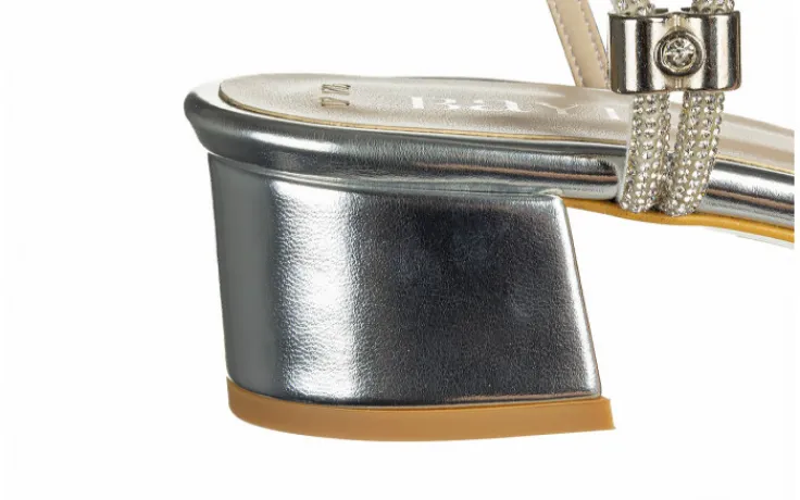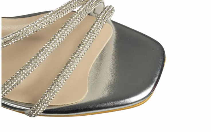 Buty są lekkie, wygodne i pięknie prezentują się na nodze. Srebrny kolor paseczków w połączeniu z delikatnymi, srebrnymi kamyczkami nadaje im wyjątkowego, kobiecego charakteru i przyciąga wzrok. Efektowna przesuwna ozdoba z zewnętrznej strony ściagąjąca pasek oplatający kostkę pozwala dopasować buty do szerokości każdej stopy. Stabilny obcas pozwala zachować równowagę nawet przy bardzo problematycznym podłożu. Paski od wewnętrzej strony obite są miękkim w dotyku materiałem. Trzy paski przy palcach dobrze trzymają stopę. Sandałki z kwadratowym czubkiem to nieodłączna część modnej garderoby w nadchodzącym sezonie.