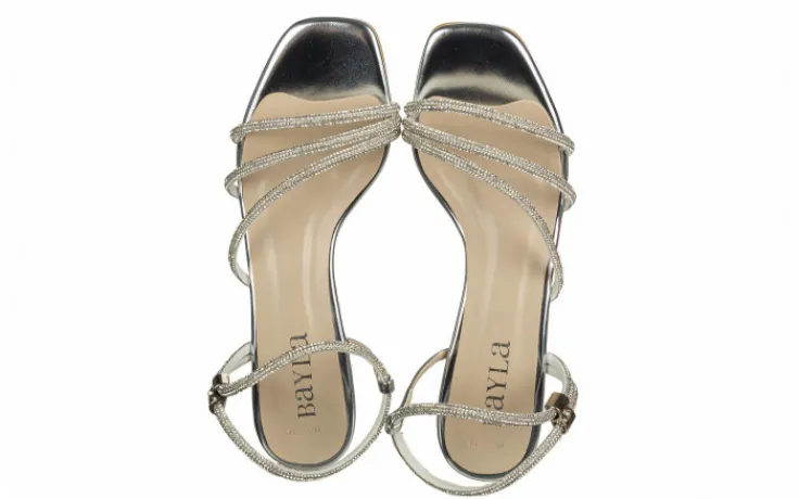 Sandały marki Bayla wykonane ze skóry ekologicznej w kolorze srebrnym.