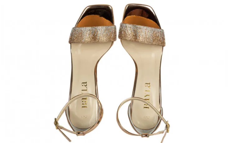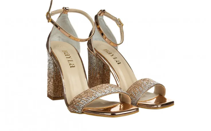 Sandały marki Bayla wykonane ze skóry ekologicznej w kolorze różowego złota.