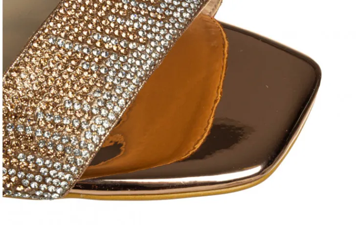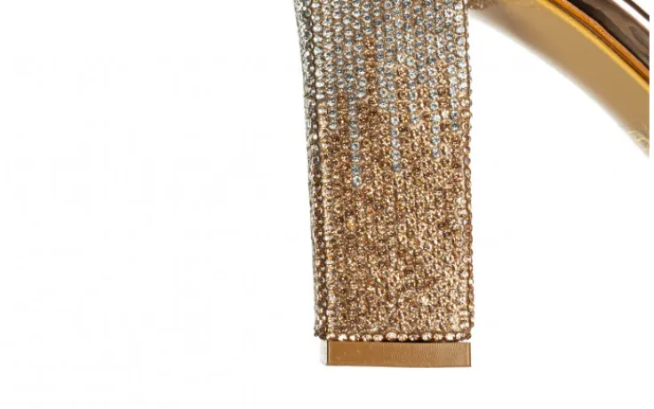 Buty są lekkie, wygodne i pięknie prezentują się na nodze. Złoty kolor paseczków w połączeniu z delikatnymi, złotymi i srebrnymi kamyczkami nadaje im wyjątkowego, kobiecego charakteru i przyciąga wzrok. Zapięcie na klamerkę pozwala dopasować buty do szerokości każdej stopy. Sandałki z kwadratowym czubkiem to nieodłączna część modnej garderoby w nadchodzącym sezonie.