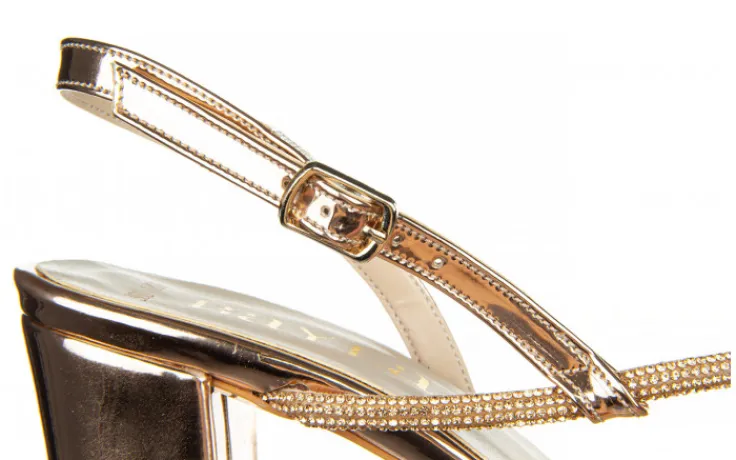Buty są lekkie, wygodne i pięknie prezentują się na nodze. Złoty kolor paseczków w połączeniu z delikatnymi, złotymi kamyczkami nadaje im wyjątkowego, kobiecego charakteru i przyciąga wzrok. Zapięcie na klamerkę pozwala dopasować buty do szerokości każdej stopy. Stabilny obcas pozwala zachować równowagę nawet przy bardzo problematycznym podłożu. Paski od wewnętrzej strony obite są miękkim w dotyku materiałem. Szerszy pasek przy palcach jest bardzo komfortowy dla stopy.