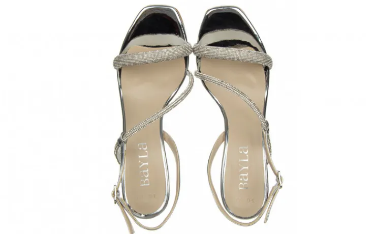 Sandały marki Bayla wykonane ze skóry ekologicznej w kolorze srebrnym, lakierowane.