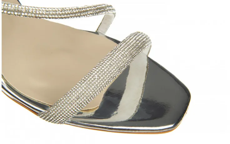 Buty są lekkie, wygodne i pięknie prezentują się na nodze. Srebrny kolor paseczków w połączeniu z delikatnymi, srebrnymi kamyczkami nadaje im wyjątkowego, kobiecego charakteru i przyciąga wzrok. Zapięcie na klamerkę pozwala dopasować buty do szerokości każdej stopy. Stabilny obcas pozwala zachować równowagę nawet przy bardzo problematycznym podłożu. Paski od wewnętrzej strony obite są miękkim w dotyku materiałem. Szerszy pasek przy palcach jest bardzo komfortowy dla stopy.